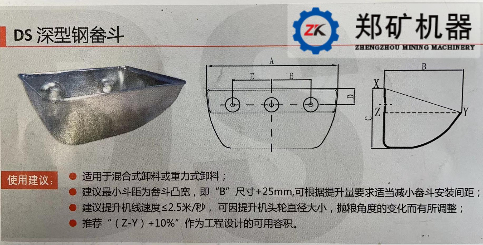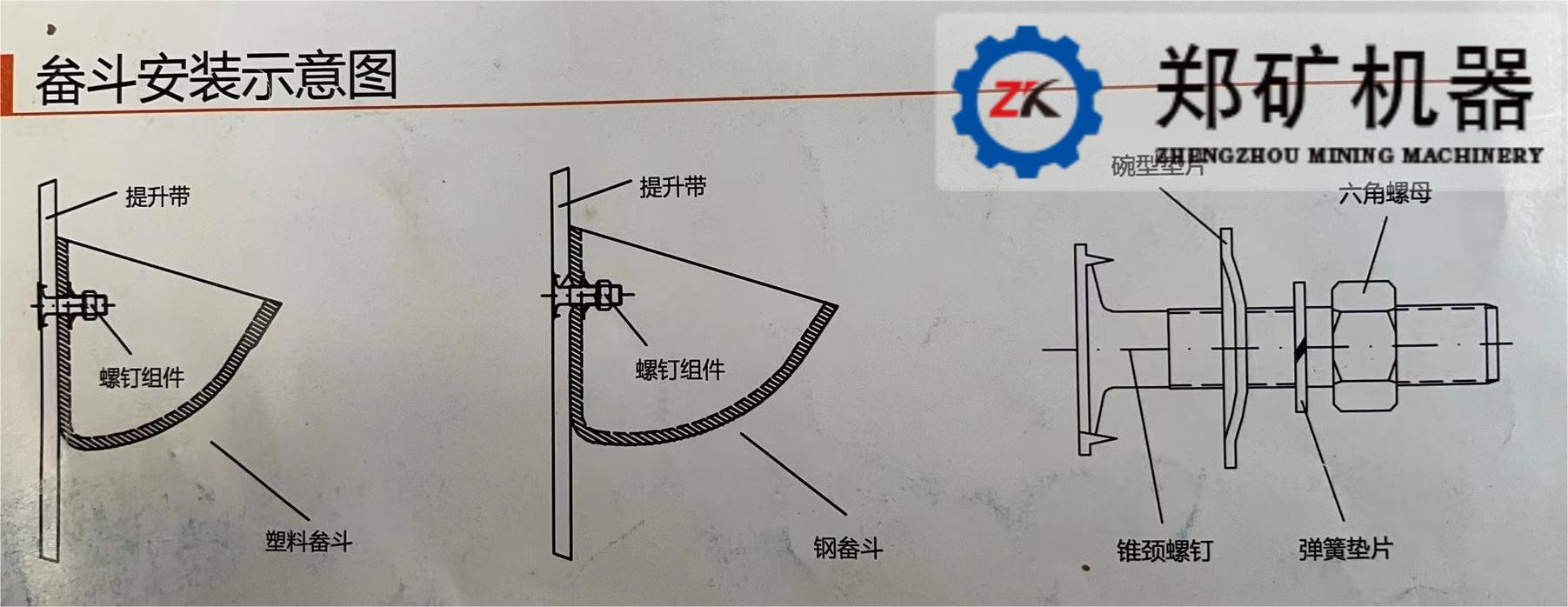 膠帶斗式提升機(jī)的優(yōu)點(diǎn)是:成本低,自重較小,工作平穩(wěn)無(wú)噪聲,可采用較高的運(yùn)行速度,生產(chǎn)效率較高,磨損較??;主要缺點(diǎn)是:料斗在膠帶上的固定較弱,因?yàn)槭怯媚Σ羵鬟f牽引力,需要有較大的初張力。因此,它主要用于中小輸送量和中等提升高度,輸送密度較小或中等的粉粒狀物料。普通膠帶輸送物料溫度不易超過(guò)60℃,采用耐熱膠帶允許達(dá)到150℃。