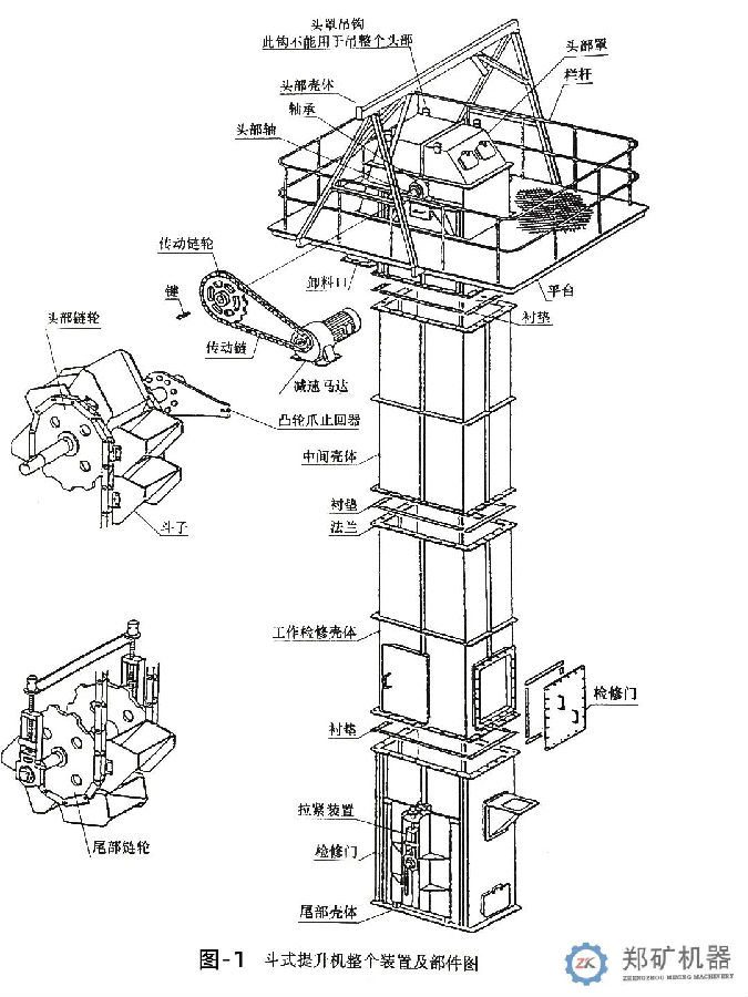 把輸送鏈和料斗裝入提升機(jī)殼體內(nèi)的恰當(dāng)方法,與安裝的空間和使用提升設(shè)備型式有關(guān)。