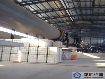 將進(jìn)廠粒度為 300 ~ 500mm 的鋁礬土,破碎后送入沸騰爐烘干機(jī)進(jìn)行烘干,然后與錳粉、外加劑等經(jīng)過配料站, 進(jìn)入帶有高效渦流選粉機(jī)的粉磨系統(tǒng)制備細(xì)度 400 目以上的生料粉,采用鄭礦機(jī)器研制的新型制粒機(jī),加水后將生料粉制成粒度合格的球粒。球粒進(jìn)入窯尾設(shè)置的烘干機(jī),利用窯尾廢氣的余熱, 使球粒的水分降低,然后經(jīng)過篩分進(jìn)入回轉(zhuǎn)窯進(jìn)行煅燒。煅燒好的陶粒砂經(jīng)單冷機(jī)冷卻后通過圓筒篩進(jìn)行篩分,合格的不同粒徑分別包裝后出廠,不合格的球粒返回到粉磨系統(tǒng)。
